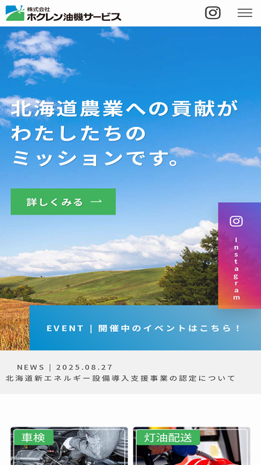 100%ホクレン油機サービスは北海道の基幹産業である農業の経営を支えるためのさまざまなサポートを行っております。ガソリンスタンド運営、灯油配送、LPガスなどのエネルギー事業をはじめ、中古車から農業機械まで車のあらゆるサポートを行い安全で快適なサービスを提供します。