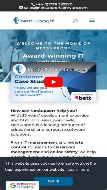 NetSupport School is the market-leading classroom management solution, helping teachers instruct and assess students, whilst managing their devices - and more! Try for free today.