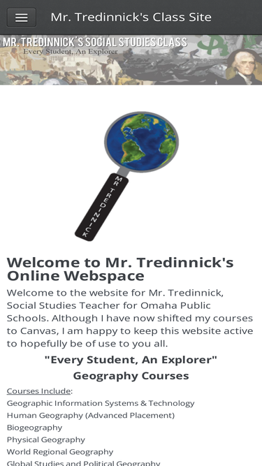 100%Welcome to the website for Mr. Tredinnick, Social Studies Teacher for Omaha Public Schools. Although I have now shifted my courses to Canvas, I am happy to keep this website active to hopefully be of...
