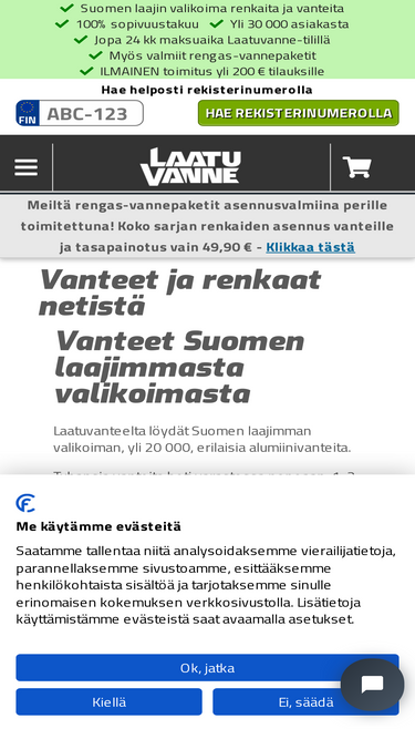 100%Verkkokaupastamme löydät laadukkaat alumiinivanteet sekä laajan valikoiman kesärenkaita sekä talvikäyttöön nastarenkaat tai kitkarenkaat.