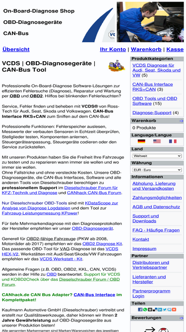 shop für obd und can-bus, professioneller support. vcds, gs-911, pocom und rks+can zur einfachen wartung und reparatur ihrer fahrzeuge.