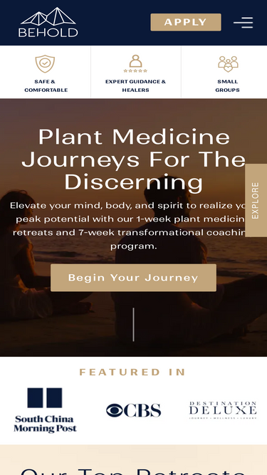 85%Begin a transformative plant medicine journey with Behold Retreats. Fill out our application form to start your path to healing and self-discovery.