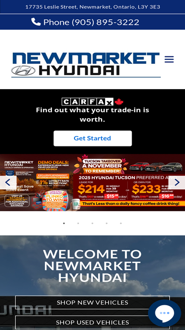 99%Find the latest Hyundai models, exceptional service, and affordable financing options at Newmarket Hyundai. Visit our dealership in Newmarket, ONT and experience the best Hyundai shopping and ownership experience.