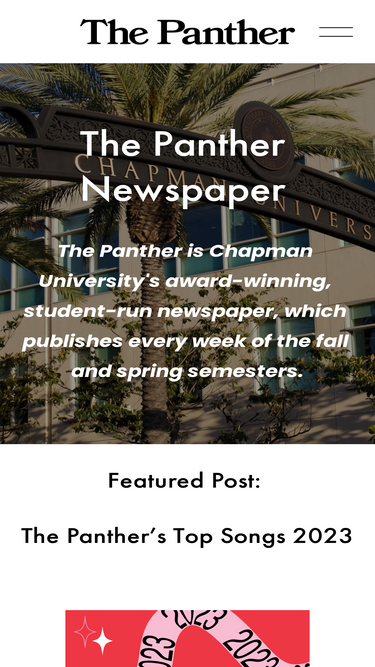 The Panther is Chapman University's award-winning student-run newspaper and publishes weekly on Mondays during the fall and spring semesters.