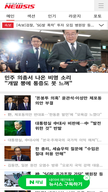 정치, 경제, 사회, 생활/문화, 세계, IT/과학 등 언론사별, 분야별 뉴스 기사 제공