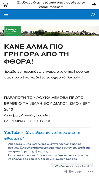 Έλαβα το παρακάτω μήνυμα στο e-mail μου και σας προτείνω να δείτε το σχετικό βιντεάκι! ΠΑΡΑΓΩΓΗ ΤΟΥ ΛΟΥΚΑ ΛΕΛΟΒΑ ΠΡΩΤΟ ΒΡΑΒΕΙΟ ΠΑΝΕΛΛΗΝΙΟΥ ΔΙΑΓΩΝΙΣΜΟΥ ΕΡΤ 2010 Λελόβας Λουκάς LookArt 2ο ΓΥΜΝ…