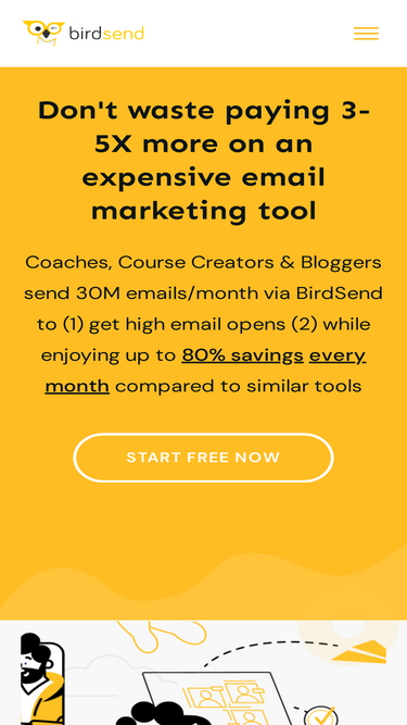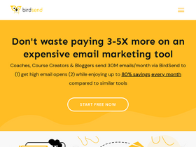 83%Content Creators send 30M emails/month via BirdSend. Save 80% in email tool expenses every month while still enjoying high email opens.