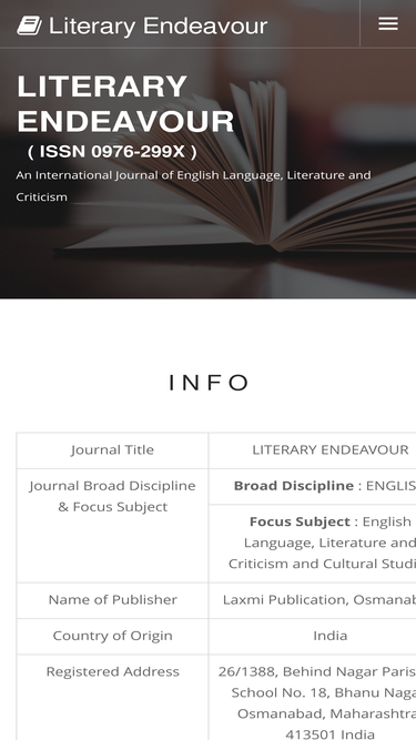 66%literary endeavour is a scholarly peer reviewed refereed print and open access journal which publishes articles and notes on english literature, criticism.