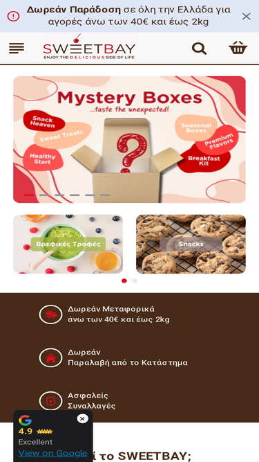 100%Καλώς ήρθατε στο Sweetbay, τον απόλυτο γευστικό προορισμό!Στο sweetbay.gr θα ανακαλύψετε έναν κόσμο γεμάτο γεύση, ποιότητα και έμπνευση. Εδώ θα βρείτε τεράστια ποικιλία από τρόφιμα για κάθε στιγμή της ημέρας και για κάθε γούστο – από μοναδικές γεύσεις που δε θα βρείτε αλλού, μέχρι premium επιλογές,
