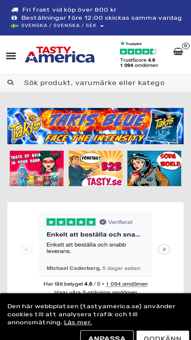 84%Köp internationella klassiker och trendiga nyheter från hela världen! Tasty America erbjuder mat, godis, snacks, läsk & TikTok-trender – från USA, Mexiko, England, Korea & Japan. Snabb leverans online & butik i Sverige. FRI FRAKT över 900kr.