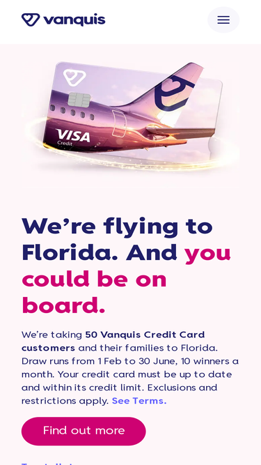 89%Win a once-in-a-lifetime trip to Orlando, Florida. Explore the range of prizes for Vanquis Credit Card customers, plus how to enter and track your entries in the app.