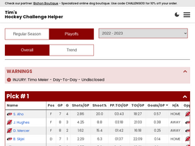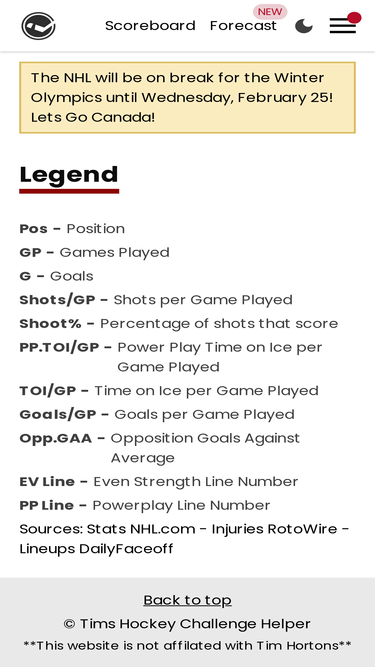 80%Player stats for today's picks in Tim Hortons NHL Hockey Challenge
