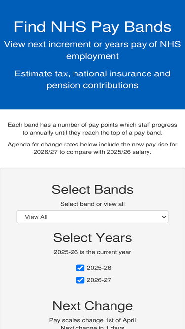 76%pay bands for nhs staff to see the next increment or years pay of employment, plus an estimated calculation of tax, national insurance and pension contributions.
