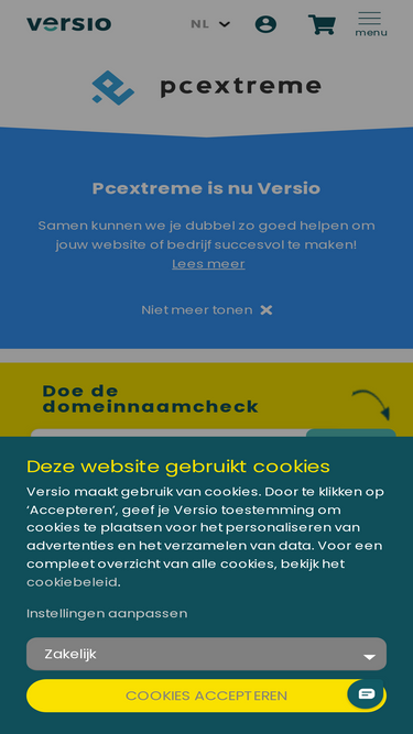 53%Het web in jouw handen samen met Versio! Registreer je domeinnaam bij Versio ook voor webhosting, VPS of E-mail! Start vandaag nog en ga direct aan de slag!