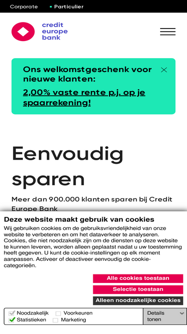 82%bij ons geniet je van de beste rentetarieven! beleggen, sparen of je geld parkeren, met credit europe bank. flexibele spaarrekening. vastrentende deposito's met aantrekkelijke voorwaarden, een welkomstbonus voor nieuwe klanten, heel eenvoudig en veilig.