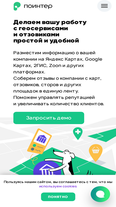 79%Сервис для работы с данными на картах Яндекс, Google, 2ГИС и и еще 30+ платформ. Автообновление данных и многое другое.