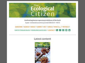 83%the homepage of the ecological citizen, an independent, free-to-access, peer-reviewed, ecocentric journal. broadly speaking, the journal covers ecocentrism and biocentrism, ecocentric and biocentric thinking, dark green ethics, deep ecology, conservation, wildlands, rewilding, earth jurisprudence, earth-centred law, and the rights of nature and mother earth.