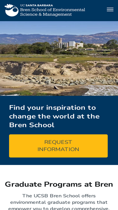 100%Bring your questions about the UCSB Bren School Master's and PhD programs to one of our upcoming admissions webinars. Meet the admissions managers, students, and faculty at Bren who can tell you about their meaningful work solving environmental problems.