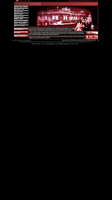 66%this web site is a virtual museum about the captivity and the tragic end of the romanov in 1918. it presents notably a 3d reconstitution of their last place of detention, ipatiev house, in yekaterinburg
