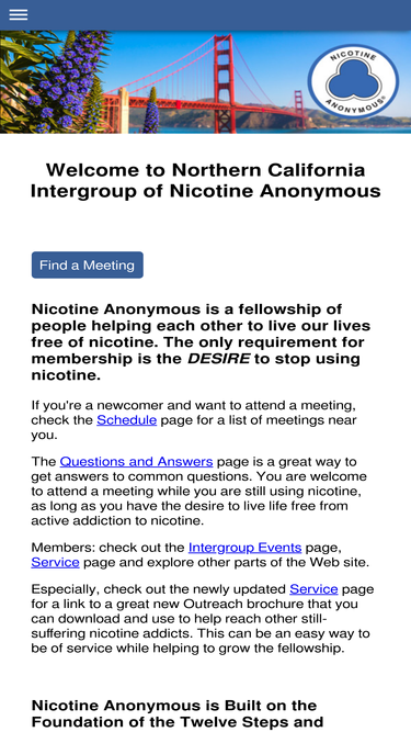 100%nicotine anonymous is a 12 step program offering support to those who want to stop smoking and other forms of tobacco and nicotine addiction. our nica norcal website offers information on nicotine anonymous including meeting schedules, literature, tips on how to quit smoking, effects of nicotine addiction, the 12 steps and 12 traditions and more.