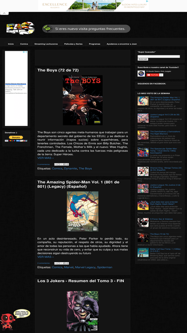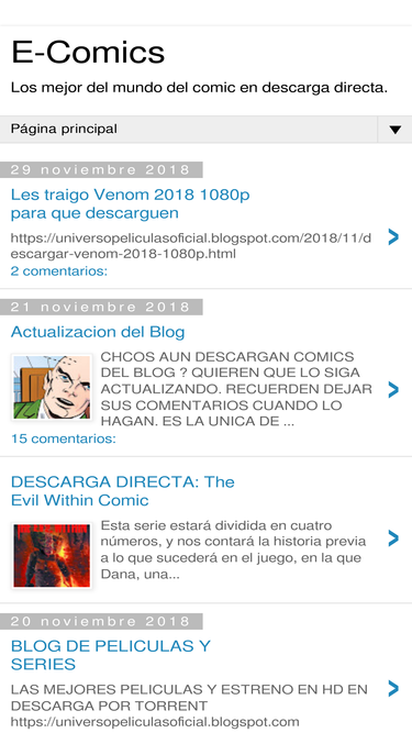 90%En este sitio encontrarás una gran cantidad de descargas directas de comics completamente en español, desde Marvel hasta DC! Comics de todas las épocas y de las mejores editoras de todos los tiempos!