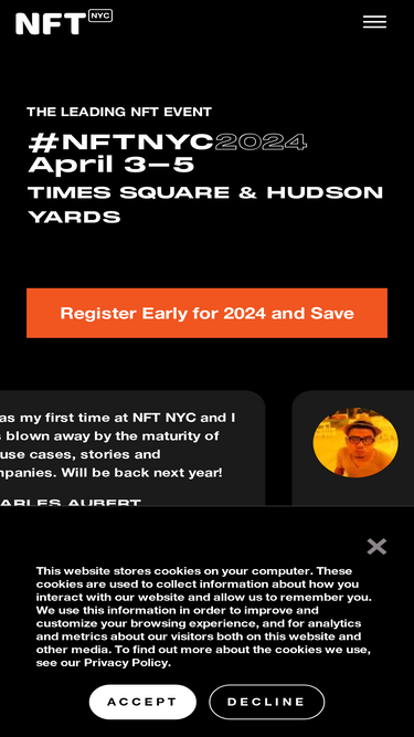100%Since its inaugural event in 2019, NFT.NYC has been committed to integrating NFTs into the attendee experience.