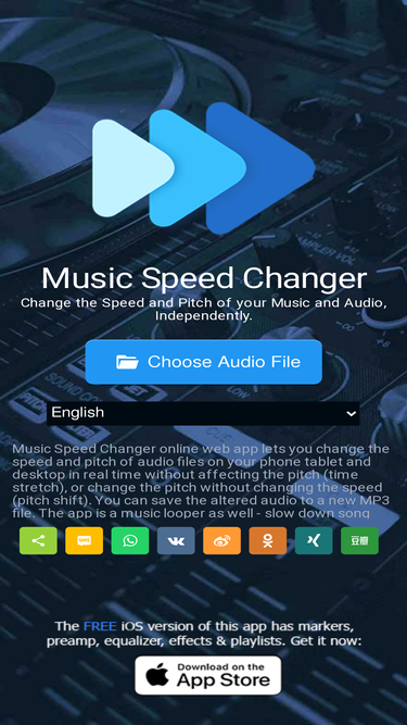 77%Online Music Speed Changer Web is a musician's tool that allows you to independently change the speed and pitch of audio files in real time and set practice loop points. Works online or offline on any device. Online Nightcore maker!