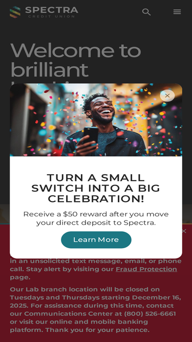100%Serving Northern Virginia, Western Maryland, and the DC area. Brilliant financial solutions built for your goals. Buy a home. Buy a car. Get a credit card. Open a checking account. Save for college. Plan for retirement. Build a more vibrant future at Spectra Credit Union.