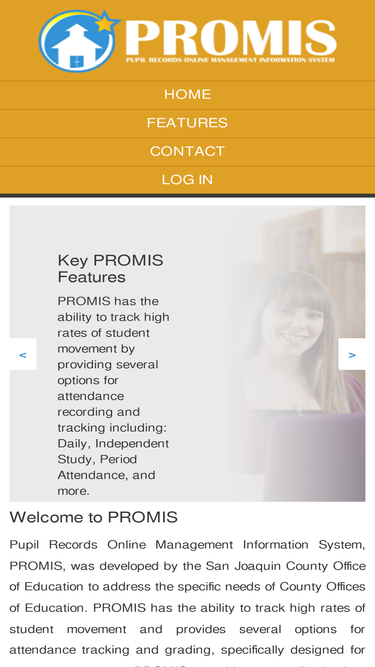 public records online management information system, promis, was developed by the san joaquin county office of education to address the specific needs of county offices of education. promis has the ability to track high rates of student movement and provides several options for attendance tracking and grading, specifically designed for county programs. promis provides centralized data allowing for multiple school sites to work seamlessly together within their district and provides live, real-time data, including student test scores, transcripts, discipline information, and demographic data. promis also offers several tools to help with ada reporting, calpads reporting, and other state reporting requirements.