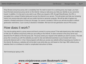 54%ninja proxy is a free anonymous web based proxy service. with ninja proxy you can browse any website anonymously and even bypass firewalls.