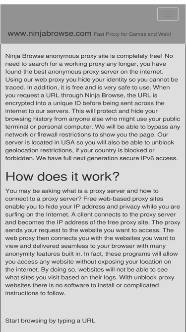 86%Ninja Browse anonymous proxy site is completely free! Using our web proxy you hide your identity so you cannot be traced. Hide your IP address today!
