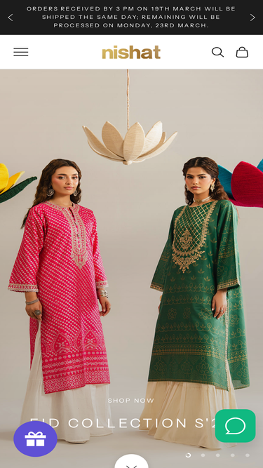 98%Nishat UK with the latest fashion trends in women's clothing offers various options to shop online unstitched dresses, ready to wear clothes, stitched luxury formal designer dresses, trousers and shalwars, scarves & shawls, aura and hues for women. Get ready to have some fun and happy shopping online!