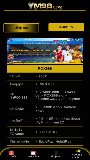 58%FOX888 เป็นหนึ่งในแพลตฟอร์มการพนันที่น่าเชื่อถือและเป็นที่นิยมมากที่สุดในเอเชีย FOX888 ก่อตั้งขึ้นในปี 2007 และเปิดตัวอย่างเป็นทางการในตลาดไทยตั้งแต่ปี 2013 จนถึงปัจจุบัน