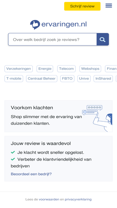 96%op ervaringen.nl staan ervaringen die zijn geschreven door consumenten. een legio aan reviews met o.a. verzekeraars, telefoonproviders en energieleveranciers.
