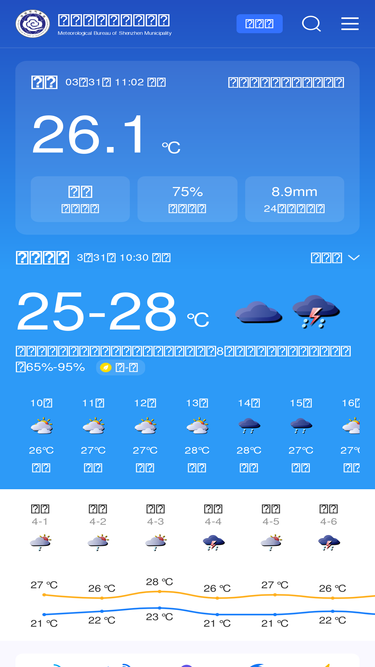 79%深圳市气象局门户网站为您提供权威、及时、准确的深圳天气预警、天气预报、天气实况、台风路径、深圳气候等信息服务,为深圳及其周边城市的生产生活提供全面可靠的气象服务