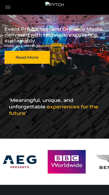 95%Make your message unforgettable.Make your message unforgettable.From the largest data conference in the world, to Christmas light trails and even your local music festival, we have the in-house capability to design and deliver your event.Our class-leading studios in Bristol are ideal for your next production, whether it's a feature film, or virtual and hybrid events. We have the only permanent Virtual Production studio in the South-West.Our content team are specialists in graphic design, motion graphics and video content for internal communications, events and social media.The people of PYTCH. We're your creative and technical partners, an agency with execution ability, run by a group of go-getters and problem solvers. We'll take your message, amplify your idea and deliver something special to write home about. 'Oh well' is not in our vocabulary, but 'we'll sort it' is. We're flexible free-thinkers with a passion for what we do.JTNDYSUyMGlkJTNEJTIyYW5jaG9yLW5hbWUlMjIlM0Vjb250YWN0JTNDJTJGYSUzRQ== Unit 3, Rookery Lane, Thurmaston, Leicester, LE4 8AUhello@pytch.co.uk0333 022 0171///audio.shelf.wisdom