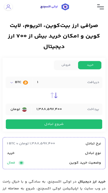 80%بهترین صرافی خرید تتر Tether در ایران، قیمت تتر به تومان لحظه ای، فروش تتر بدون کارمزد 🔥 با احراز هویت فوری در سایت ارز دیجیتال اوکی اکسچنج.