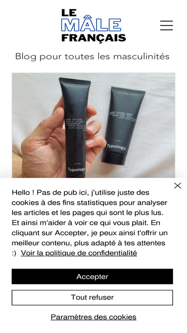 100%Le Mâle Français est un blog sous la forme d'un magazine masculin parlant beauté, mode, sport, voyage, décoration. N'hésitez pas à parcourir mes articles.