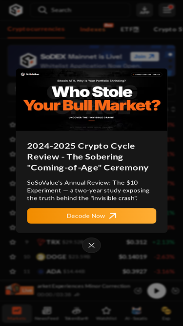 100%Live Crypto Prices, Bitcoin/ETH ETFs Data, On-Chain Data Dashboard, Bitcoin Spot ETF Trends, and Up-to-the-Second Cryptocurrency News.