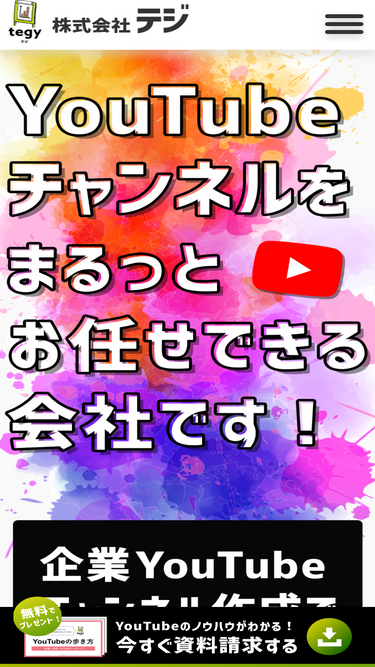 79%株式会社tegy(テジー)は、YouTubeチャンネル運用、広告代理業、モーションコミック制作、ホームページ作成、SEOコンサルティング、サイト運営、EC事業を行っています。集客、映像にこだわったYouTubeマーケティングならtegyにおまかせください。