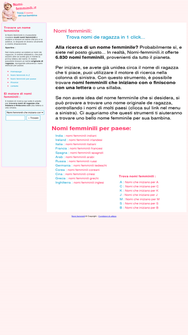 86%questo sito è esattamente quello che vi serve se siete alla ricerca di nomi femminili. in realtà, i nomi di nomifemminili.it offre oltre 6830 nomi di ragazza per aiutarti a trovare uno del vostro futuro bambina.