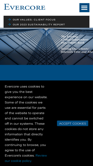 82%Evercore is a premier global independent investment banking firm dedicated to helping clients achieve superior results.