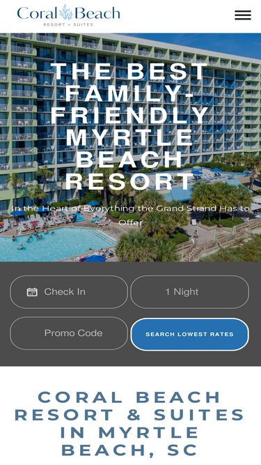 74%Coral Beach Resort & Suites is an award-winning oceanfront resort in Myrtle Beach and a family-friendly hotel choice for your next South Carolina vacation.