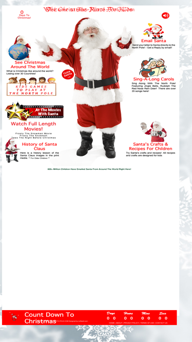 34%welcome to the north pole with santa. email santa claus right here! play games, watch christmas movies, sing along christmas carols in karaoke, crafts and recipes for children, learn how children around the world celebrate christmas.