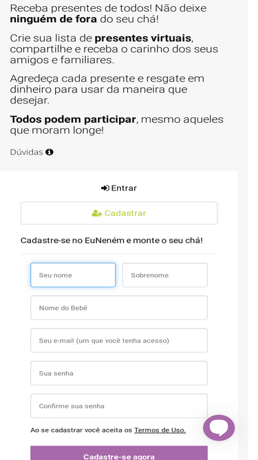 O Site Nº1 de Chá de Bebê Online. Faça a lista do seu chá, compartilhe com seus amigos e familiares e receba muitos presentes deles!