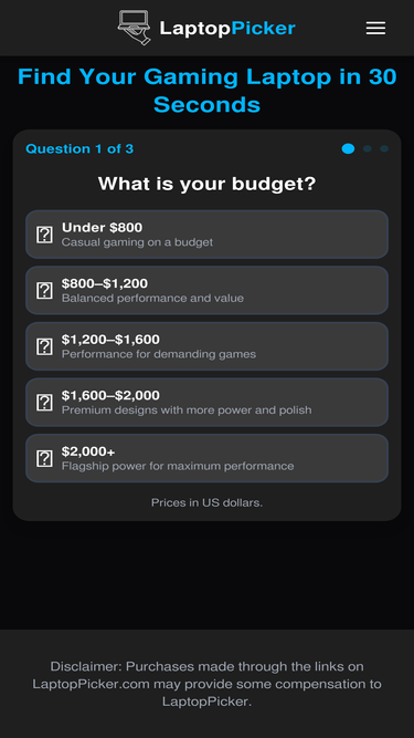 Find the best gaming laptop for your needs in 30 seconds. Our personalized recommendations are based on thorough performance benchmarks and expert reviews.