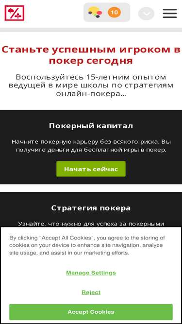80%добро пожаловать на сайт ведущей покерной онлайн-школы с самыми подробными руководствами по стратегиям в покере, с профессиональным софтом и инструментами, а также с активным покерным сообществом. учитесь играть в покер онлайн, пользуйтесь чартами рук, ознакомьтесь с нашими уроками по техасскому холдему и начните свою покерную карьеру. регистрируйтесь сейчас – это бесплатно!
