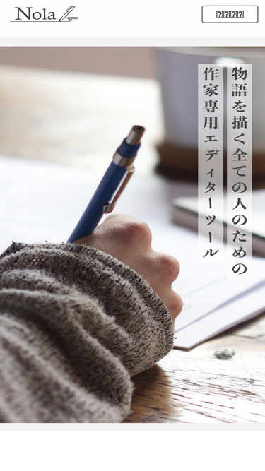 79%Nola(ノラ)は、原稿執筆から商業化までを支援する創作プラットフォームです。原稿の執筆からプロットの作成、登場人物などの設定管理まで、創作に必要な機能を利用できます。執筆した作品は商業化に向けて、様々な出版社につながる機能も提供しています。