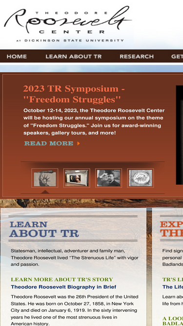 98%Annual Symposium www.theodoreroosevelt.org/teddycon Past Symposia The Theodore Roosevelt Center hosts an annual symposium at Dickinson State University to