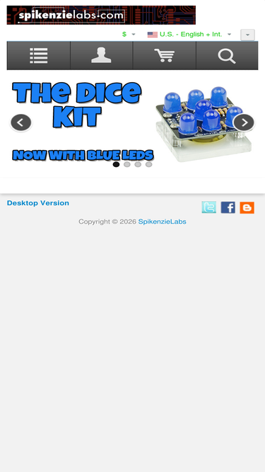 spikenzielabs : - spikenzielabs components gift certificates laser items & service drum kits prototyping wireless mechatronics sparkfun clearance power & batteries led & light kits retired more brands watches & clocks starter stuff useless machine toys & game kits educators wearables wire and cables supplies sensors adafruit audio replacement part arduino blinkies tools development electronics, open source, kits, arduino, adafruit, sparkfun